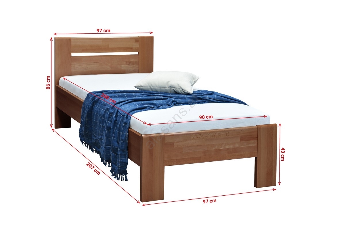 • Einzelbett aus Massivholz AMBER 90x200 cm Buche