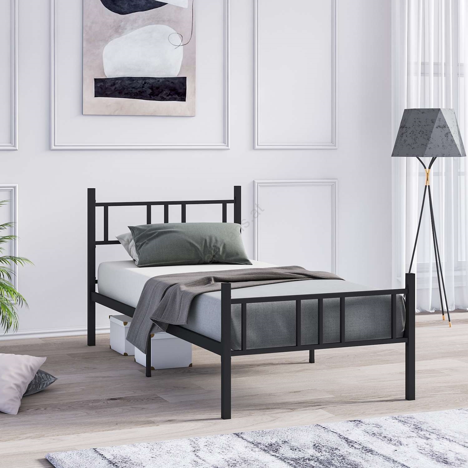 Einzelbett aus Metall PIRON, 90 x 200 cm, schwarz – belastbar bis 120 kg