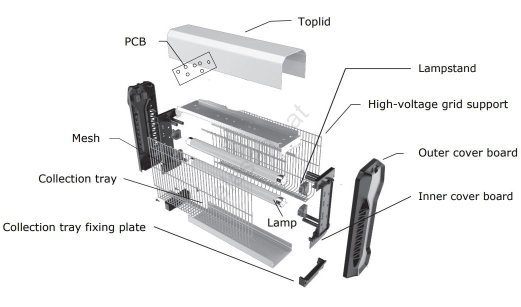 • Abnehmbares und waschbares Auffangblech für tote Insekten.