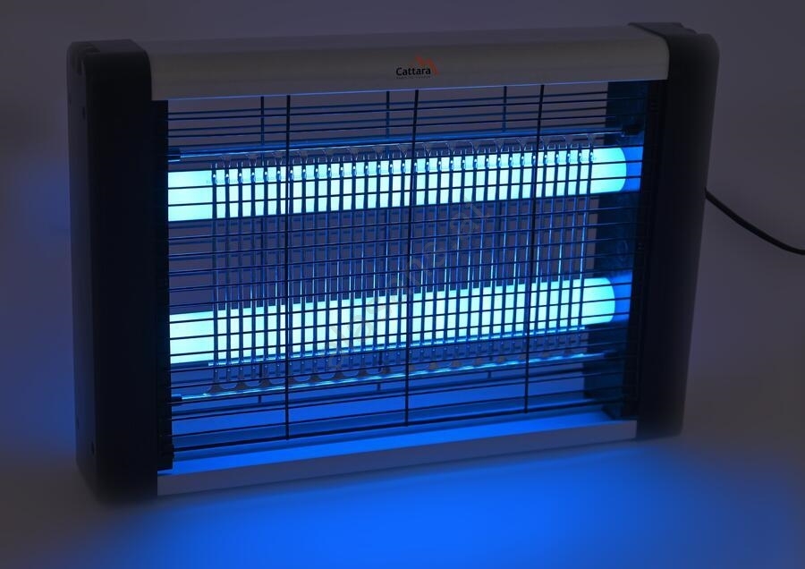 • Die Insekten werden beim Kontakt mit dem metallischen Hochspannungsnetz durch elektrischen Strom getötet.