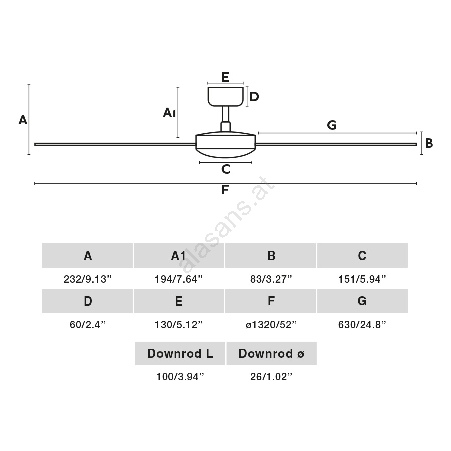 • Der DC-Motor verfügt über 6 einstellbare Geschwindigkeitsstufen mit einem Verbrauch von 4-6-10-17-24-35W und 71-95-115-135-158-174 U/min. je nach Stufe.