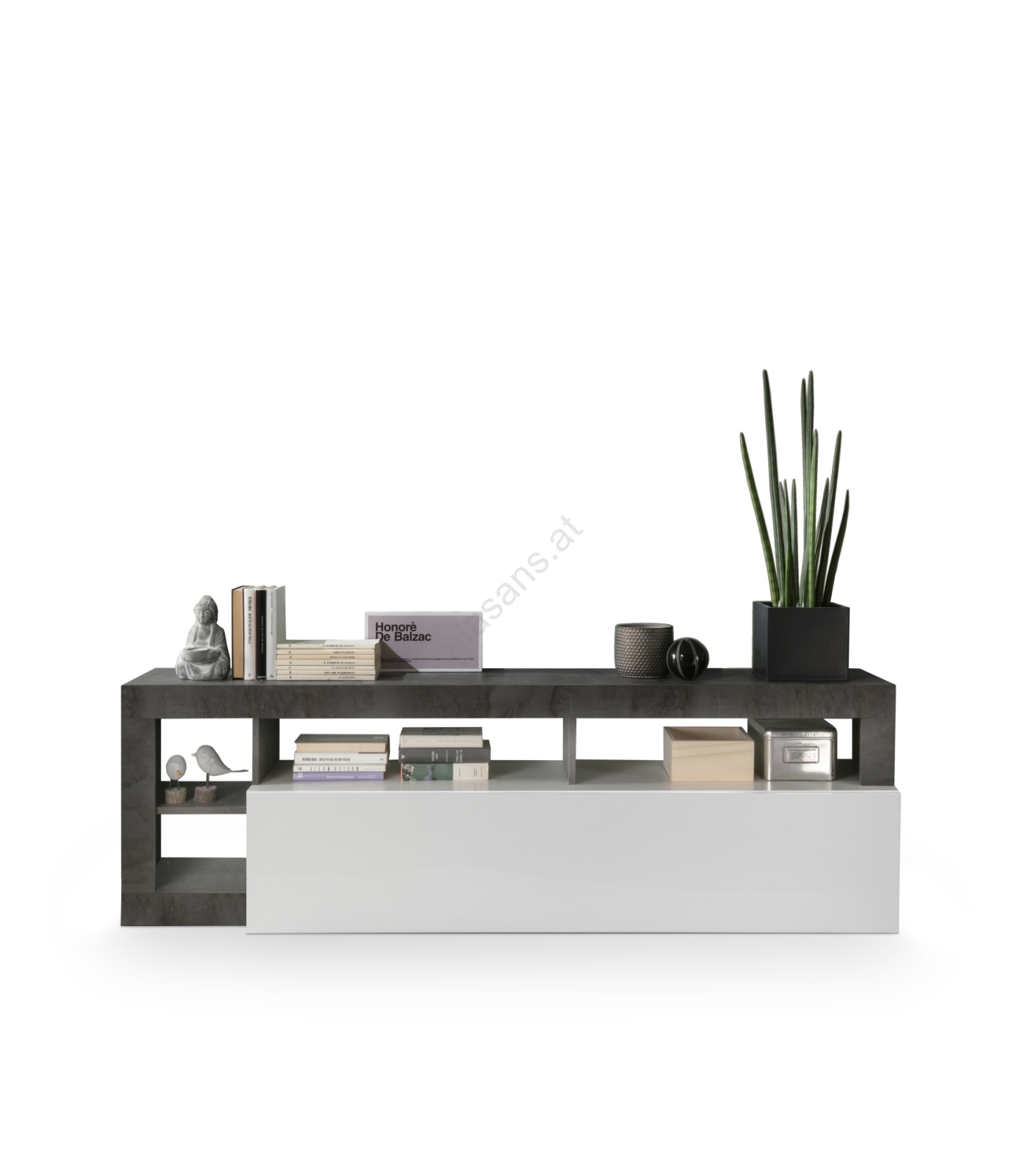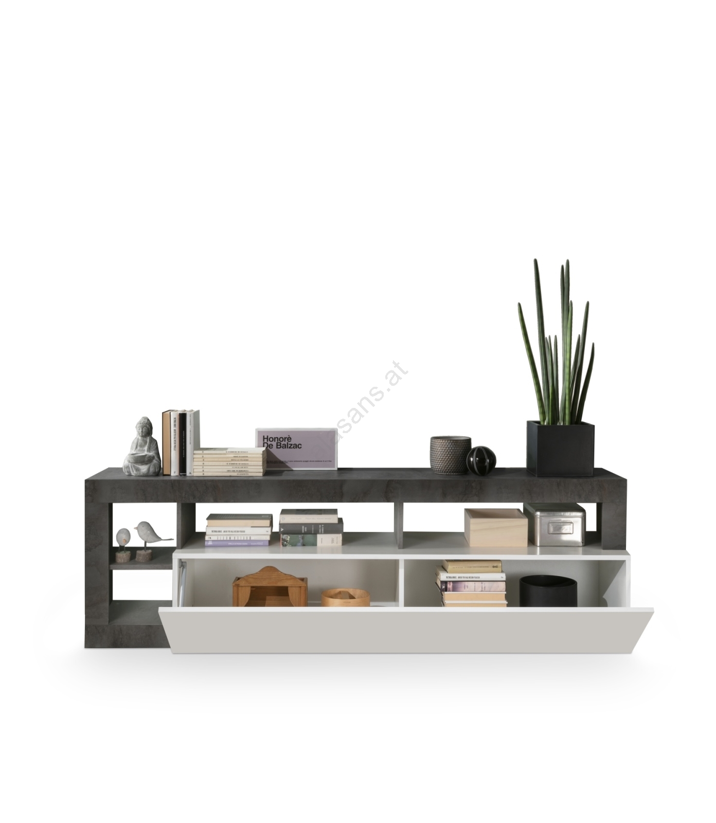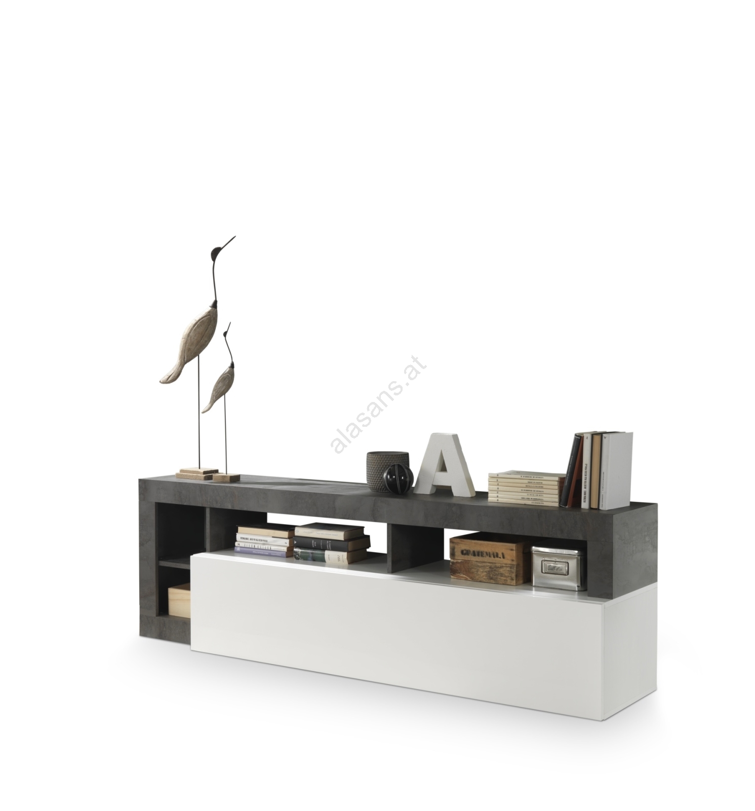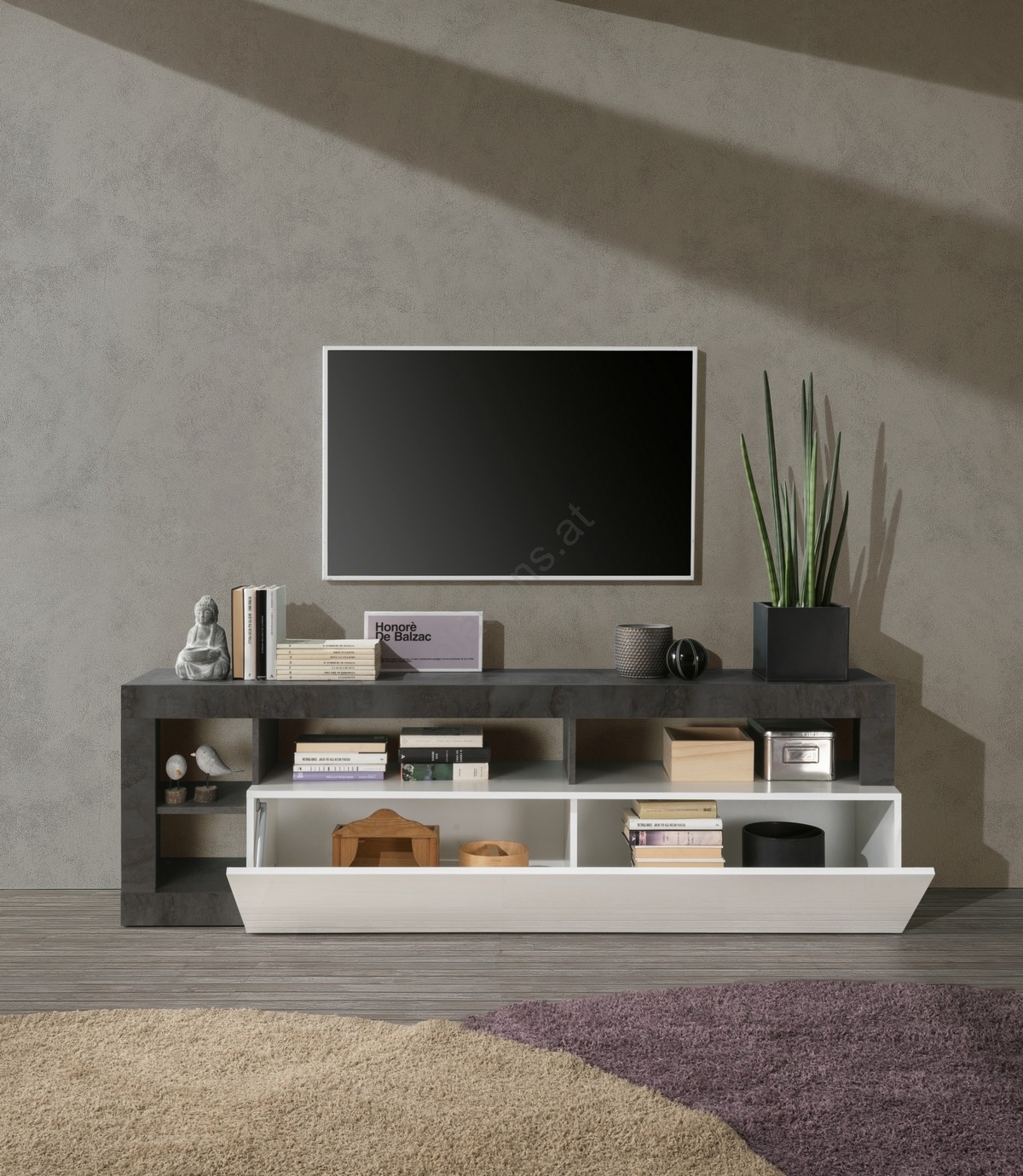 • TV-Lowboard LENOR weiß/grau in Betonoptik