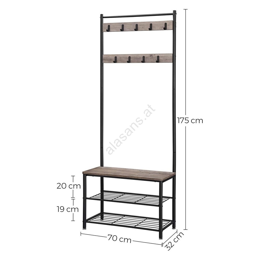 • Verleihen Sie Ihrem Zuhause den Charme von Holz und die Robustheit von Metall mit diesem stilvollen Garderobenständer im Industrial-Design.