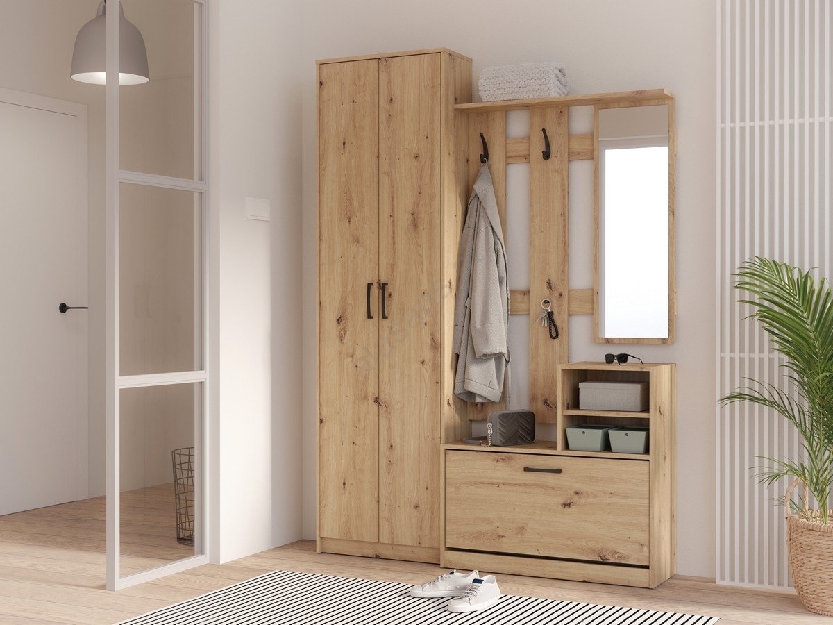 Garderobenwand KAVI mit Spiegel, Artisan-Eiche