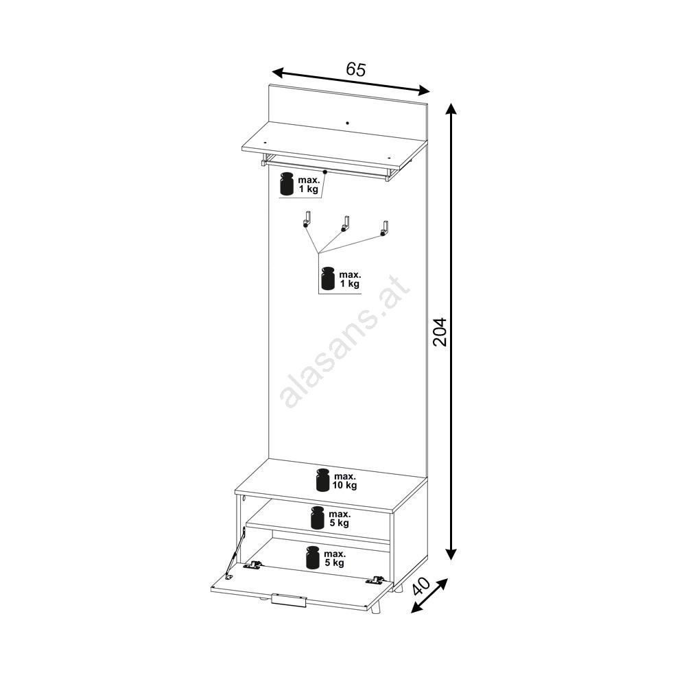 • Darunter befindet sich ein geschlossenes Fach für Schuhe, Accessoires oder andere Alltagsgegenstände.