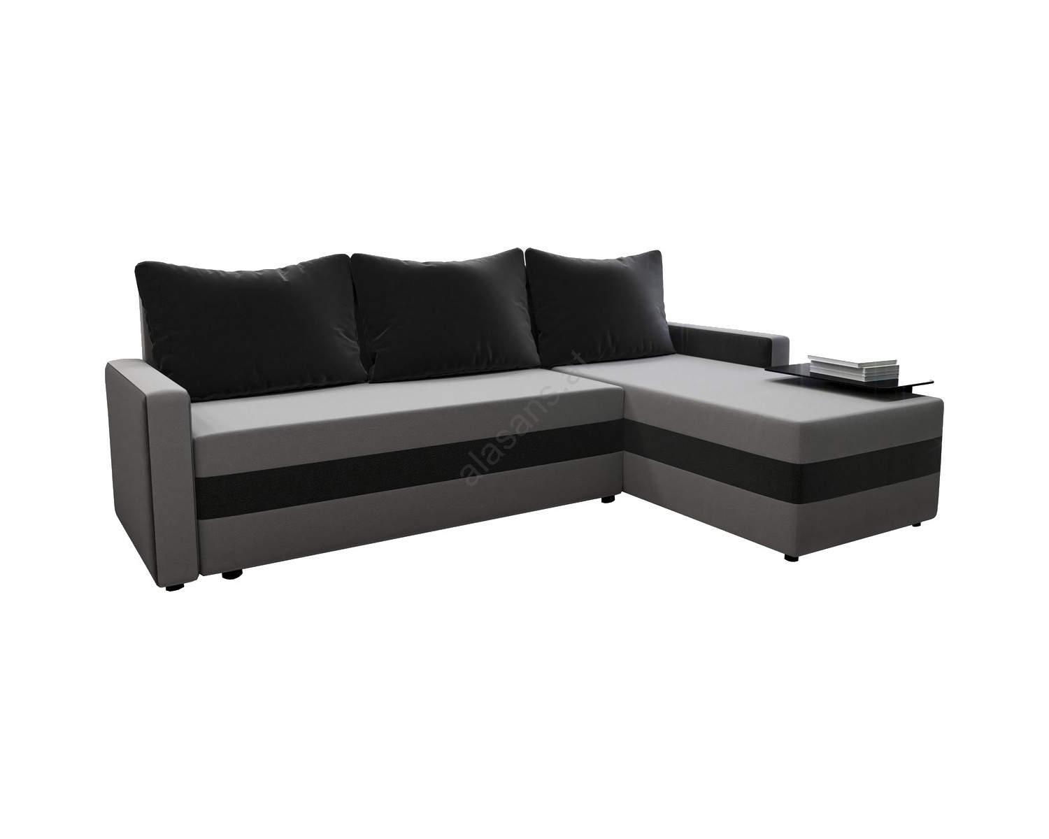 • Ihre universelle Konstruktion ermöglicht es, die Eckgarnitur je nach Anordnung Ihres Wohnzimmers an der rechten oder linken Seite zu montieren.