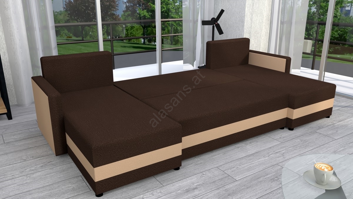 Gepolsterte, universell montierbare U‑Eckcouch mit Schlaffunktion BRISTOL, Braun/Beige