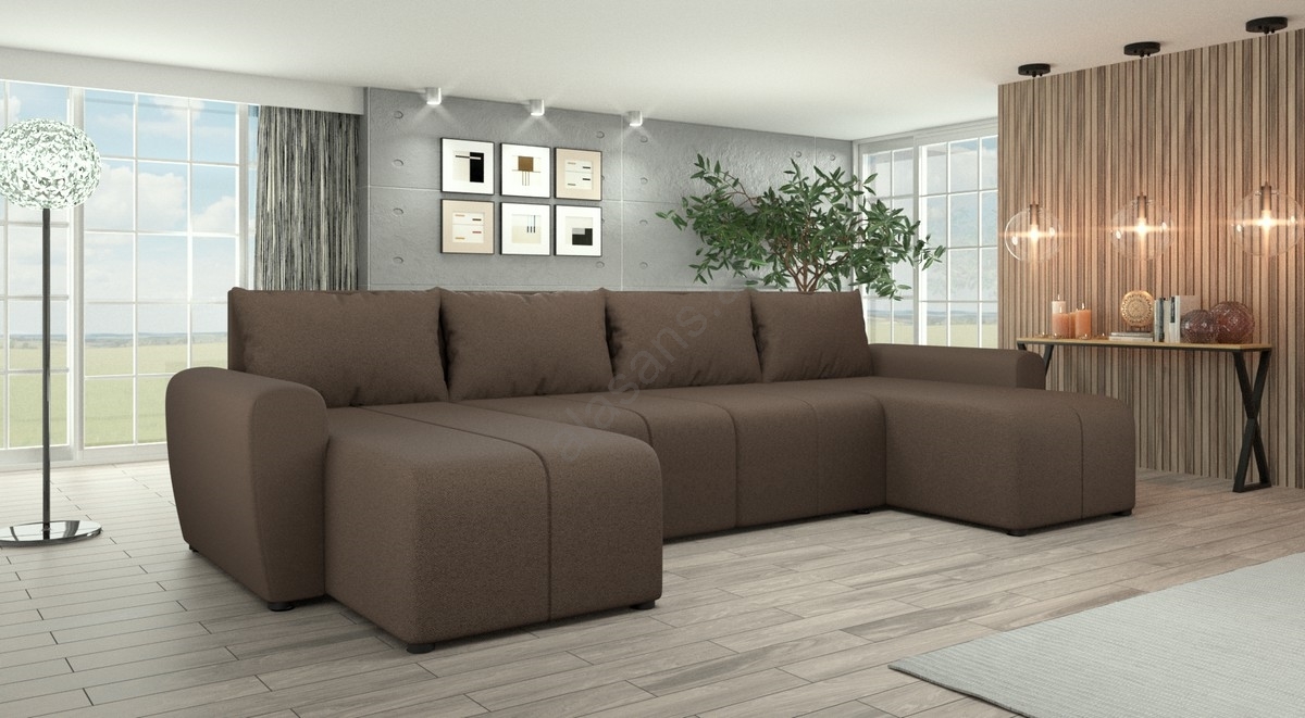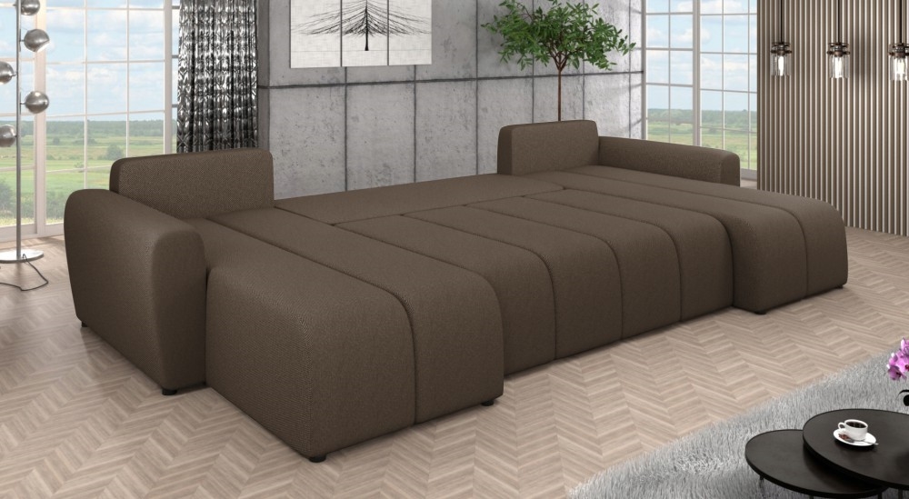 Gepolsterte, universell aufbaubare, ausziehbare U‑Wohnlandschaft NEWPORT, braun
