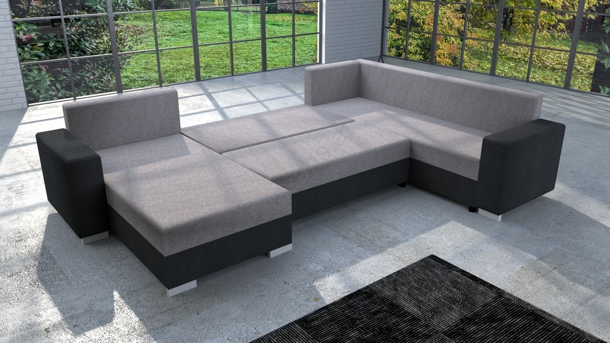 Gepolsterte, universell einsetzbare, ausziehbare U‑Sitzgarnitur mit Schlaffunktion YORK, grau/schwarz