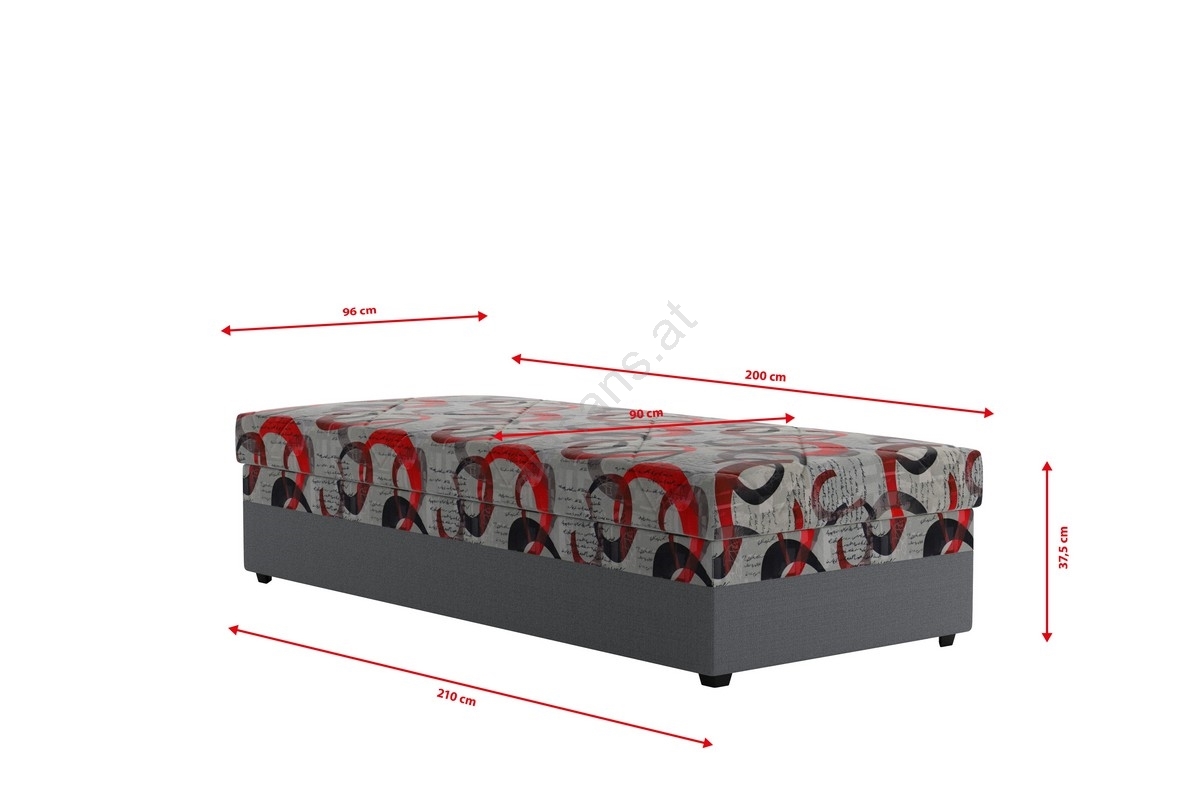 Gepolstertes Tagesbett ESTEL mit praktischem Bettkasten, 90x200 cm, grau