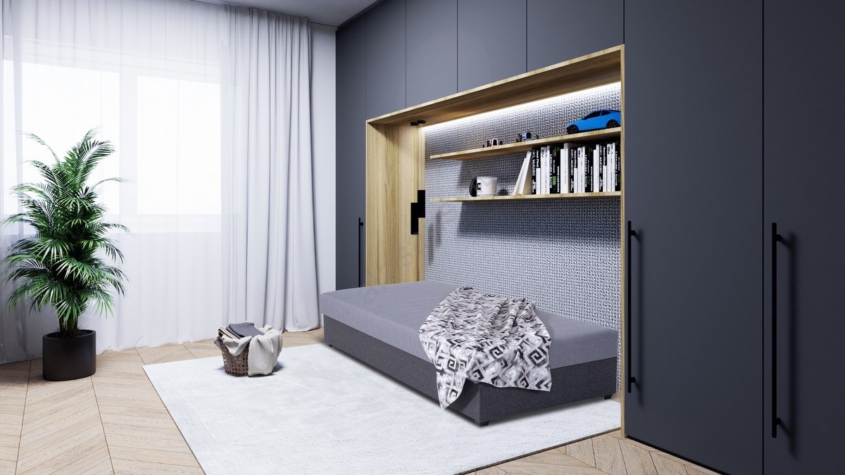 Gepolstertes Tagesbett mit Stauraum JACOB XL, Tragkraft 130 kg, 90x200 cm, grau