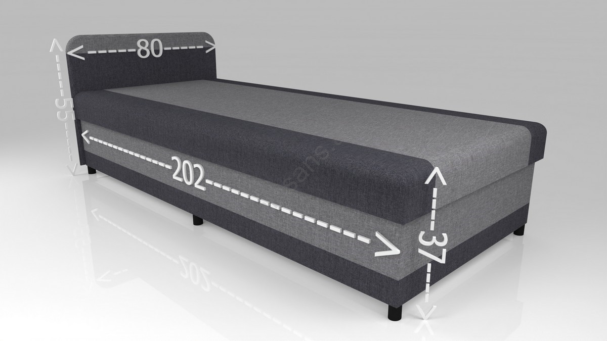 • Gepolsterte Liege mit Stauraum TALI 80x202 Grau/Anthrazit