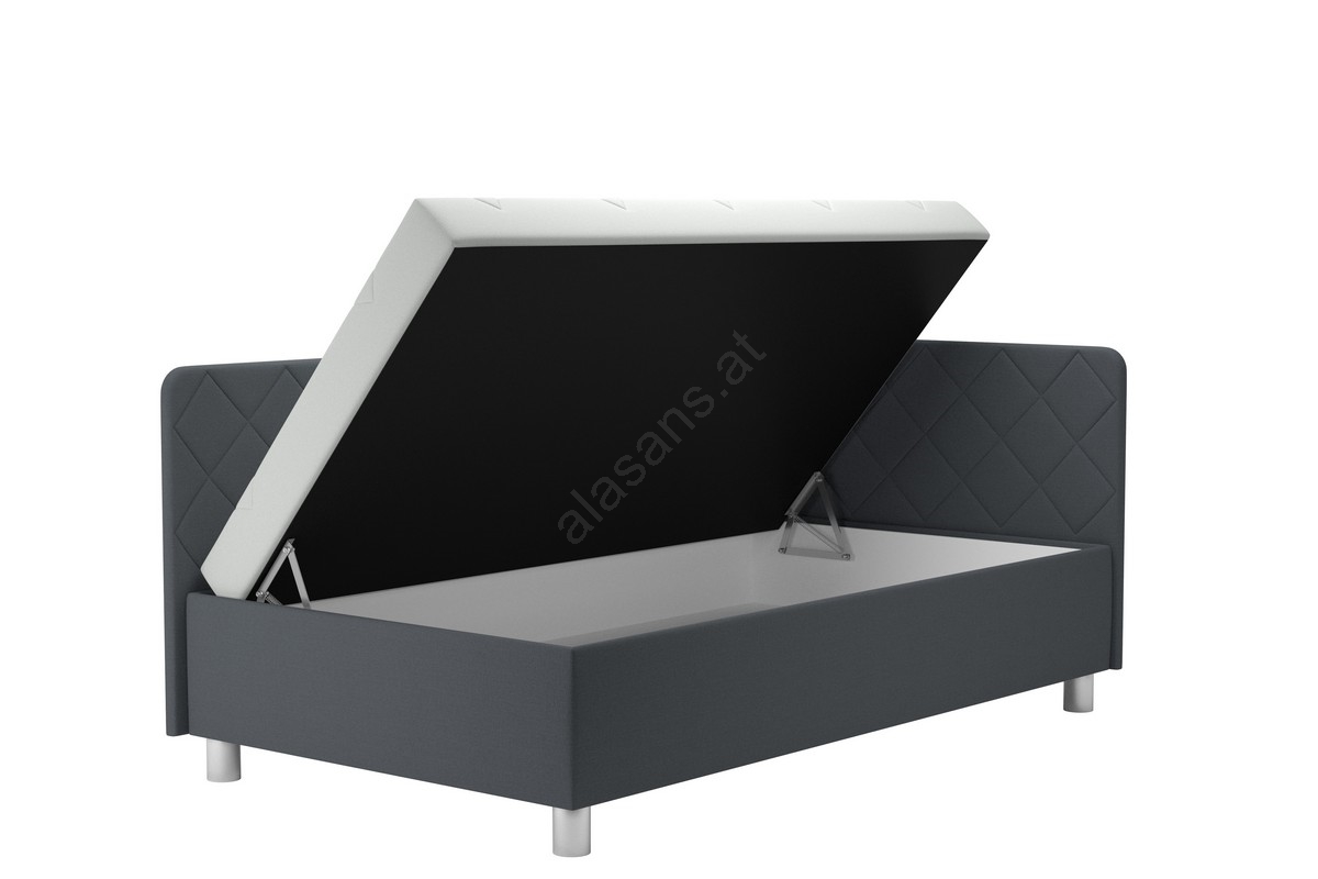 Gepolstertes Tagesbett EMILE 110x200 cm mit integriertem Stauraum und Matratze, grau