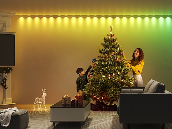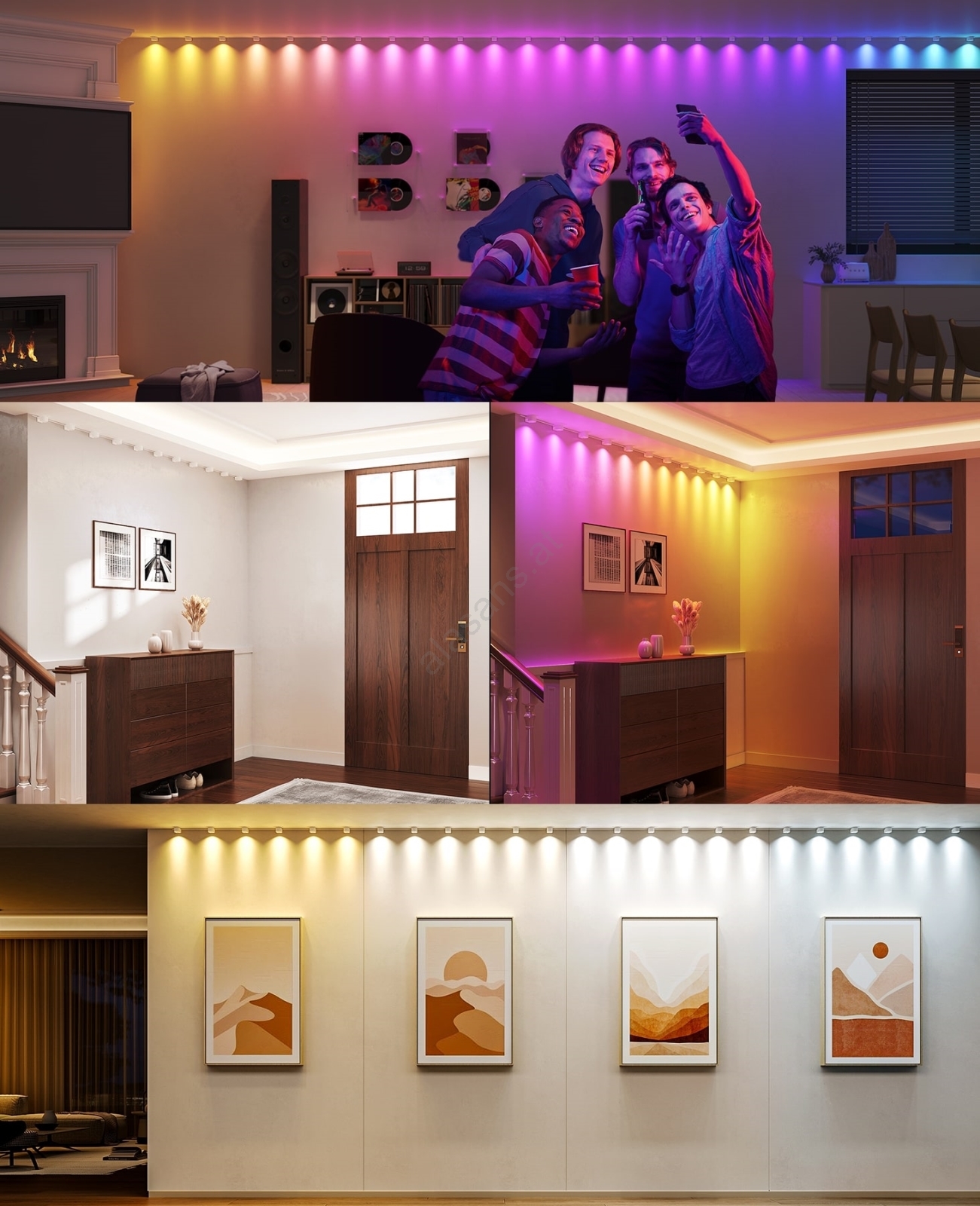 • Dank der RGBIC-Technologie kann jede Leuchte unabhängig gesteuert werden, mit Auswahl von RGB-Farbton, Weißlichttemperatur und Helligkeit.