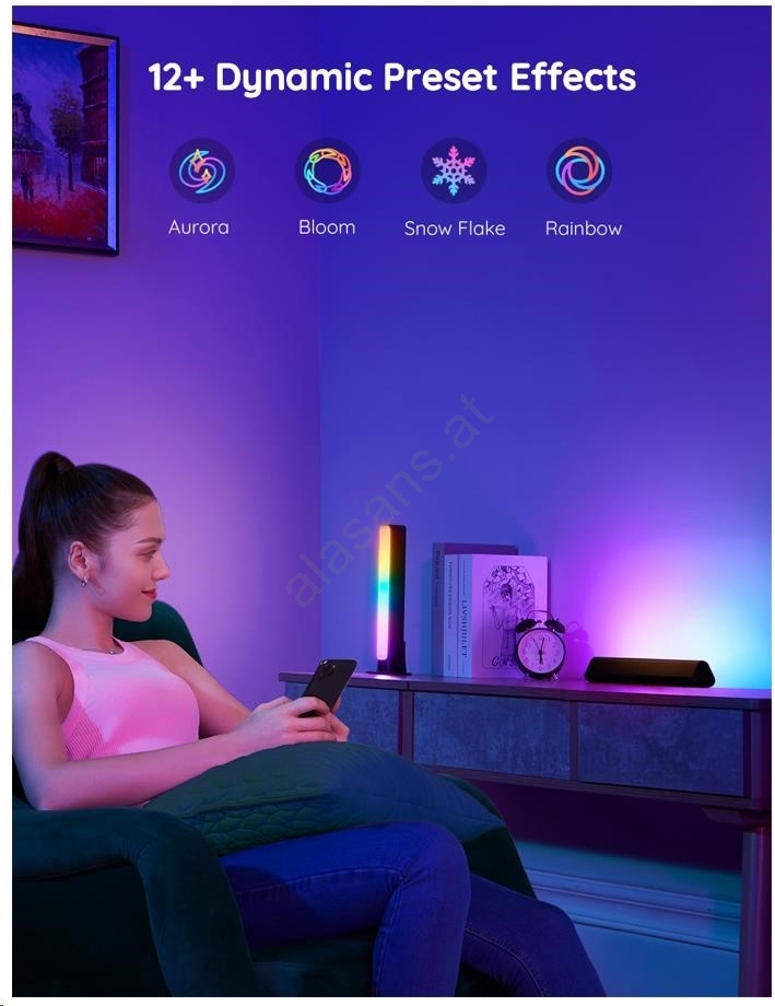 • Die RGBICWW-Technologie kann bis zu 57 Farben gleichzeitig aus einer Gesamtpalette von 16 Millionen Farben bei einer Intensität von 1-100 % darstellen.