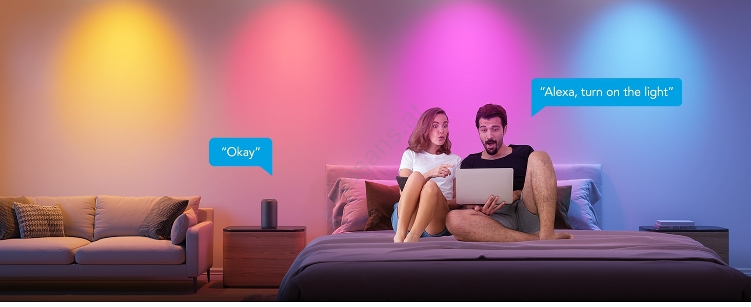 • Sprachsteuerung ist möglich über Siri, Amazon Alexa und Google Assistant.