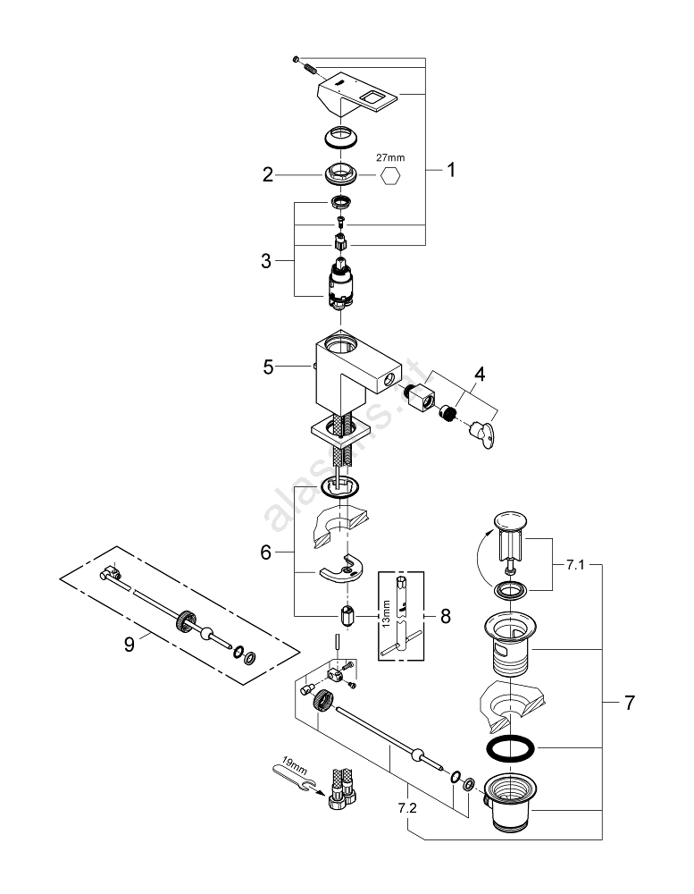GROHE 23138000 - Bidetarmatur EUROCUBE Größe S, glänzender Chrom