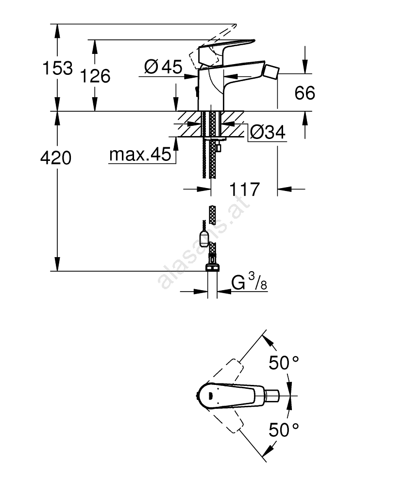 • GROHE Water Saving-Technologie reduziert den Wasserverbrauch auf 5 l/min bei 3 bar.