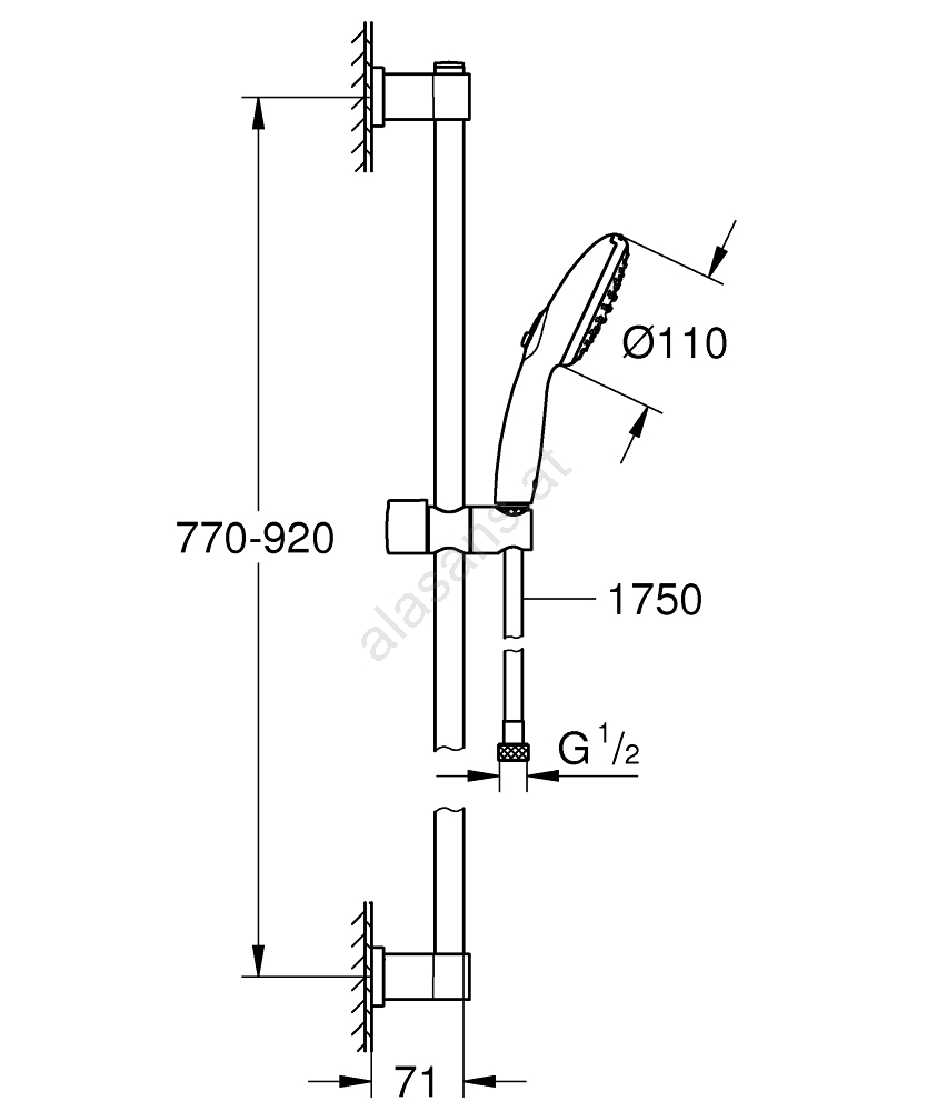 • Die 900 mm lange Duschstange Vitalio Universal mit einstellbarer oberer Halterung ermöglicht die Montage in vorhandenen Bohrungen.