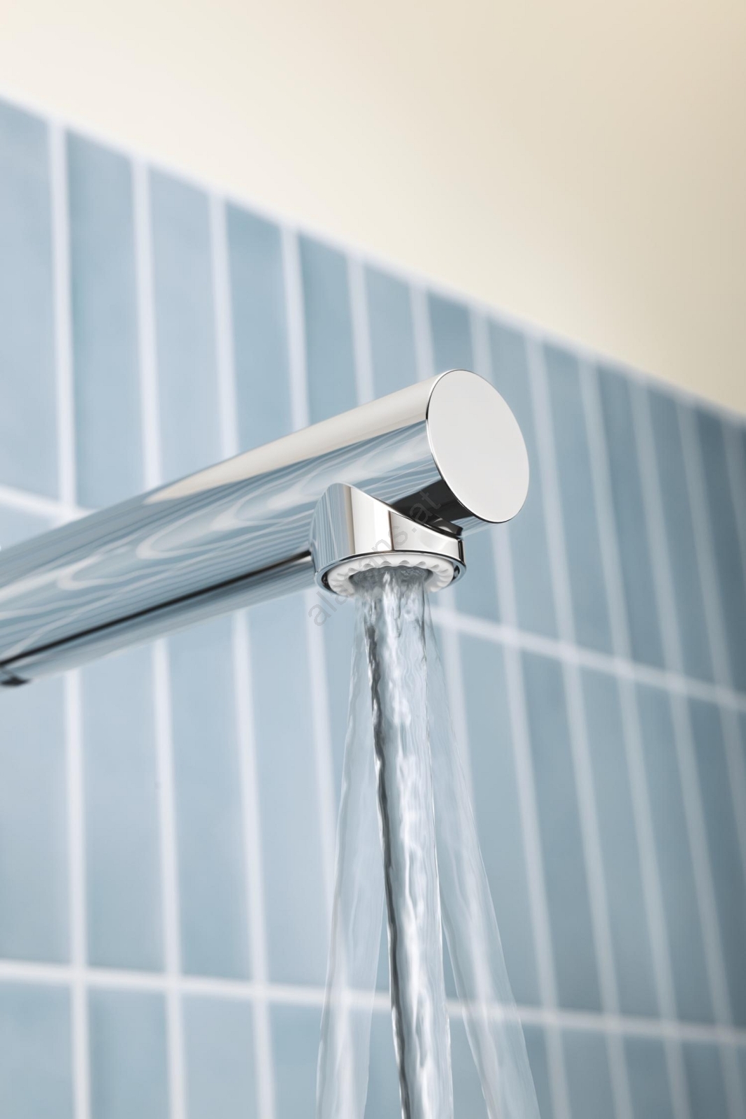 • Der verstellbare Perlator GROHE AquaGuide ermöglicht die Anpassung des Strahlwinkels.