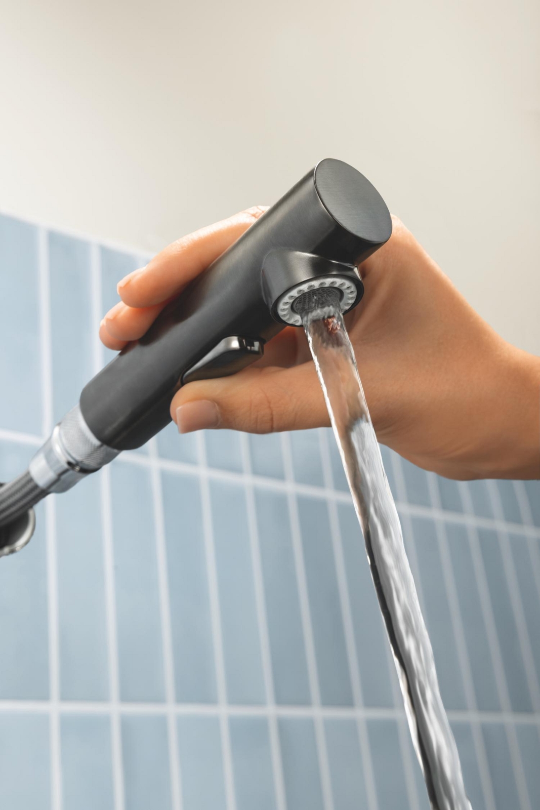 • Ausziehbare Doppelbrause mit Umschaltung zwischen Laminarstrahl und Brausemodus für maximale Flexibilität.