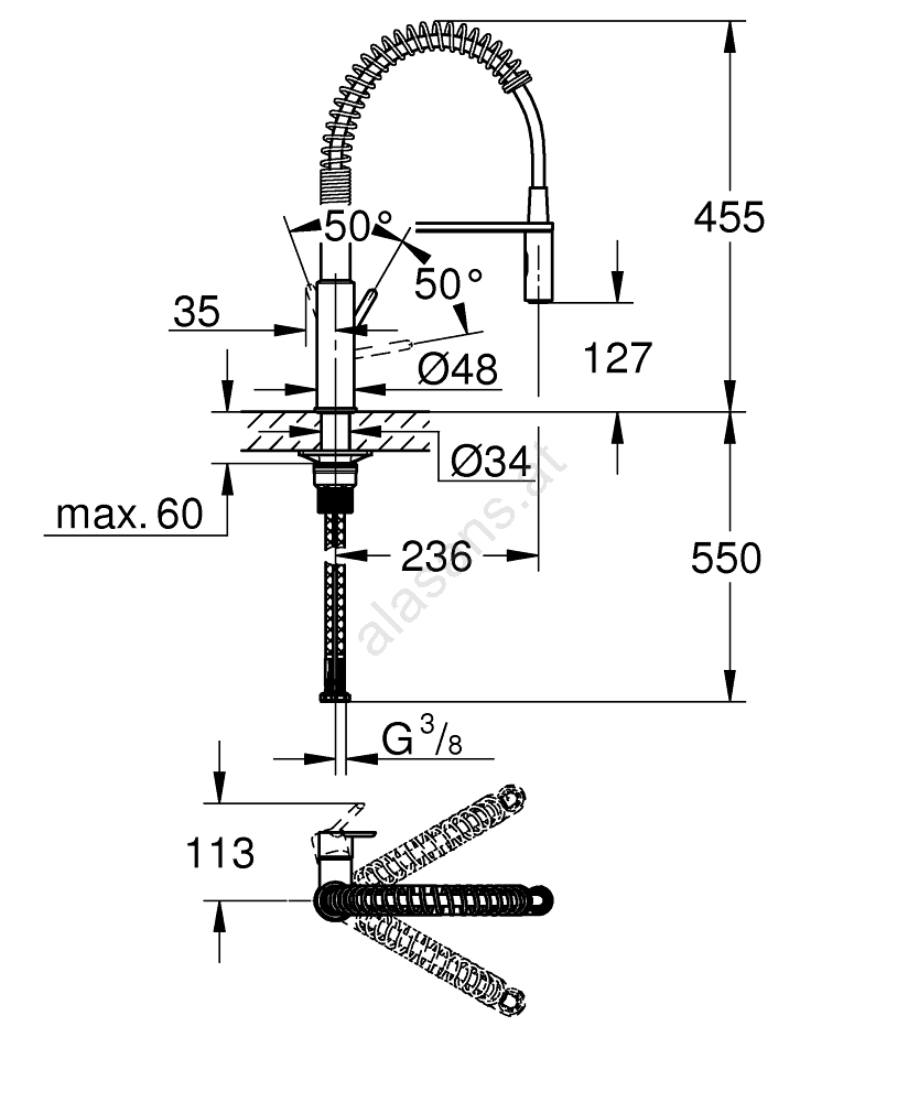 • Professionelle Küchenarmatur mit Federarm für maximale Flexibilität.