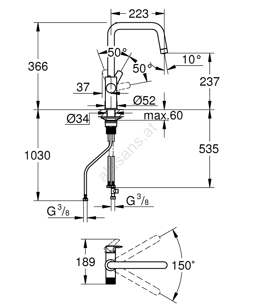 • Schwenkbarer Rohrauslauf mit 150° Drehwinkel bietet Flexibilität bei der Nutzung.