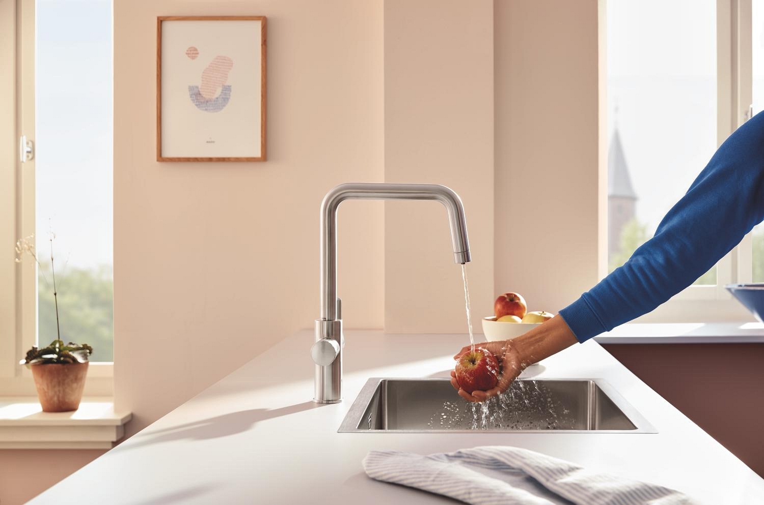 • Einhebel-Küchenarmatur GROHE Blue mit integrierter Filterfunktion für reines und geschmackvolles Trinkwasser.