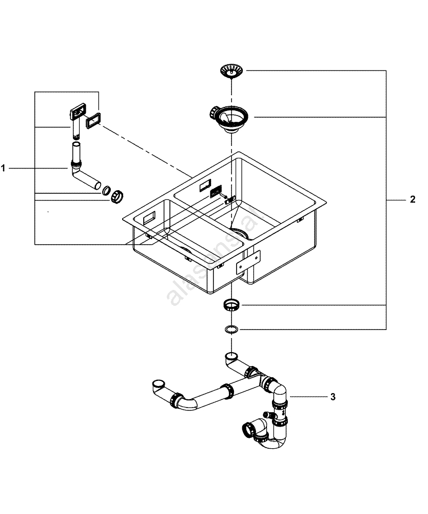 • Im Lieferumfang enthalten: Abflussgarnitur, Siebkorb und Montagesatz.