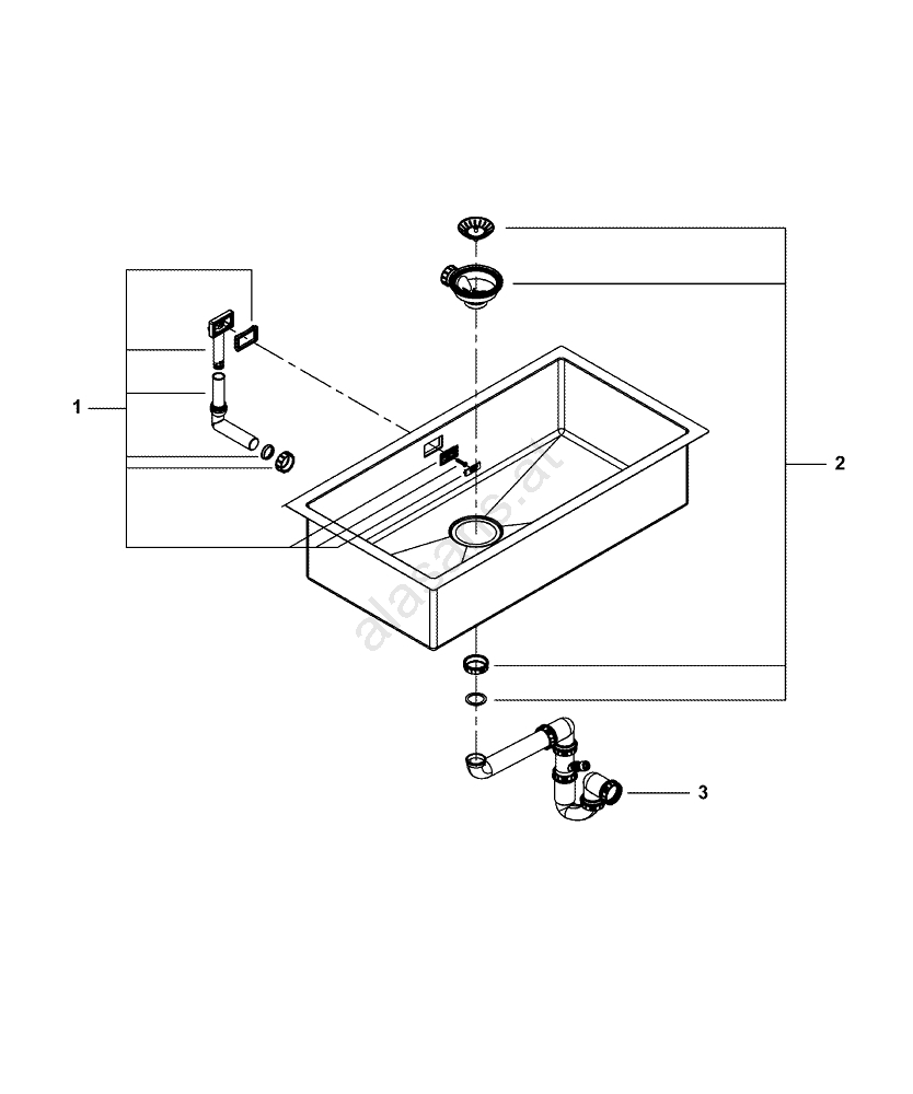 • Inklusive Abflussgarnitur mit Korb und Montagesatz.