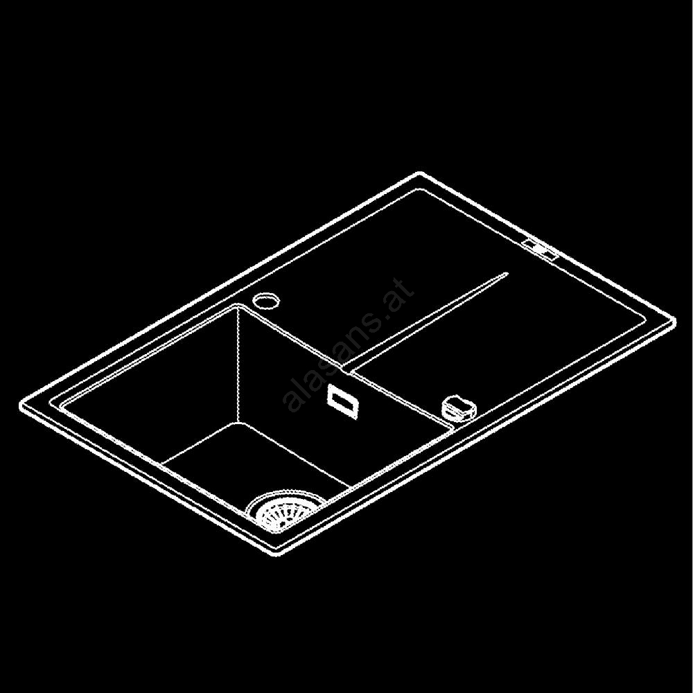 • Die Gesamtabmessungen der Spüle betragen 780 x 500 mm, mit einem Becken mit den Maßen 347 x 440 x 205 mm.