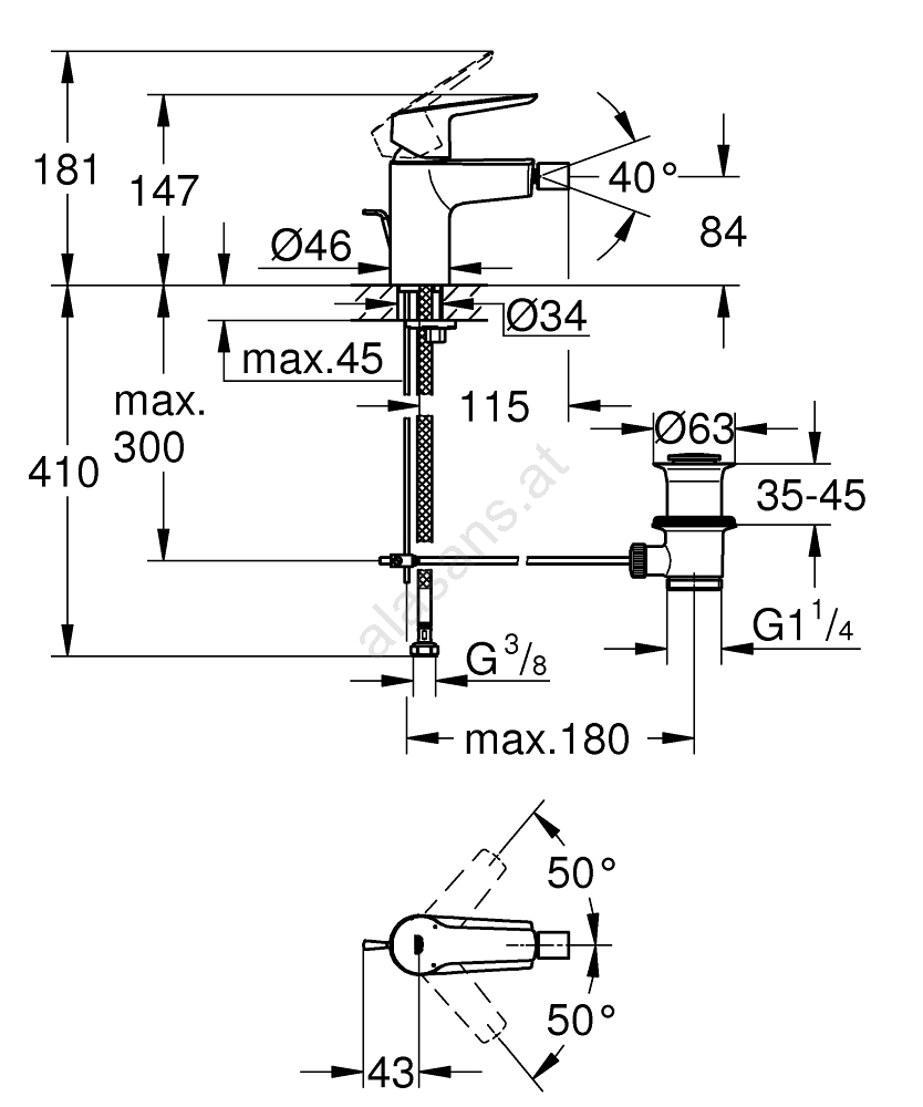 • Einstellbarer Durchflussbegrenzer zur Wasserersparnis.