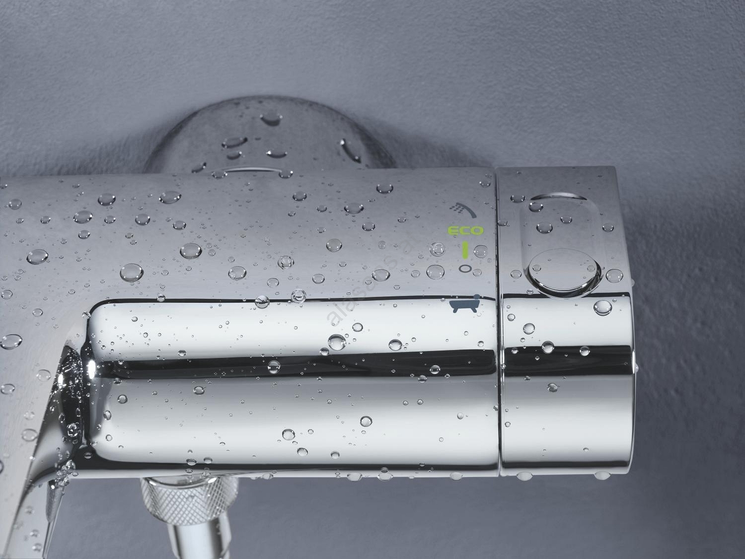 • Die wassersparende GROHE EcoButton-Funktion reduziert den Wasserverbrauch beim Duschen.