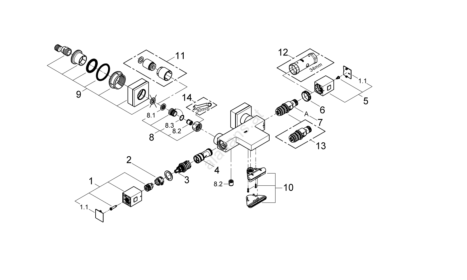 GROHE 34497000 - Thermostat-Wannenarmatur GROHTHERM CUBE DN 15, glänzender Chrom