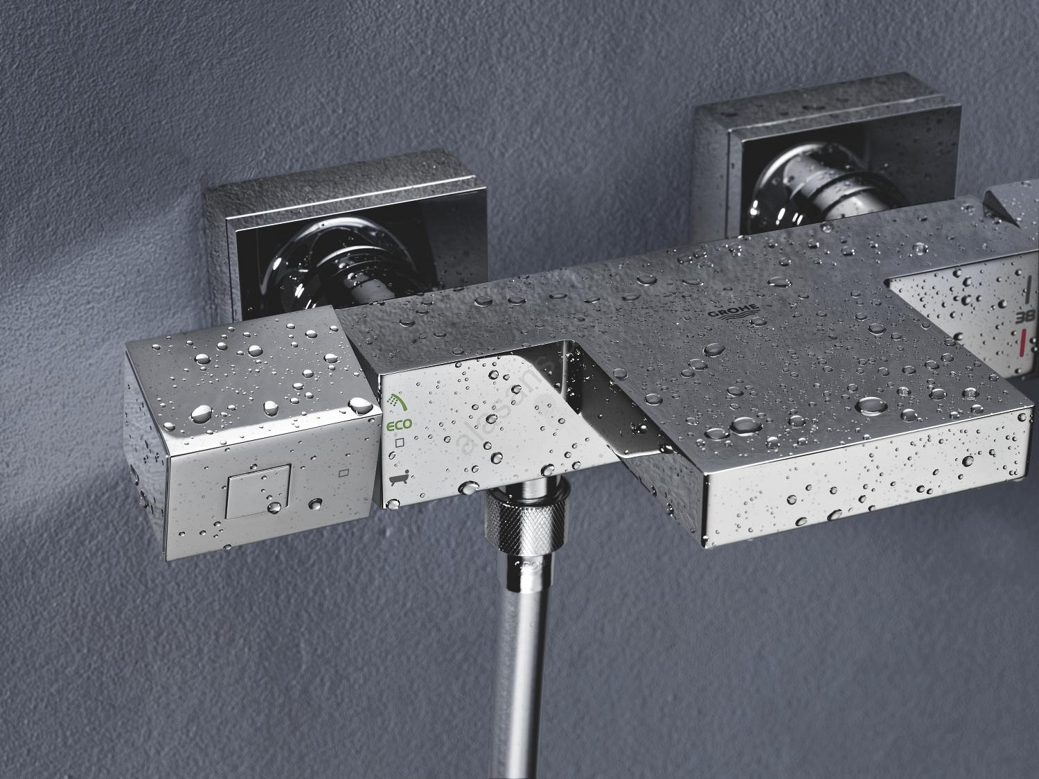 • Integrierte Sparfunktion GROHE EcoButton reduziert den Wasserverbrauch beim Duschen.
