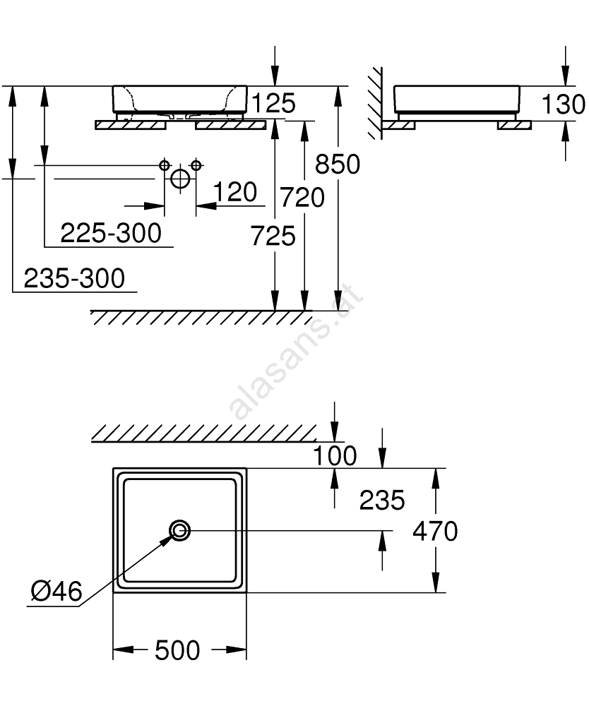• Maße 500 × 470 mm, ideal für unterschiedlich große Badezimmer.