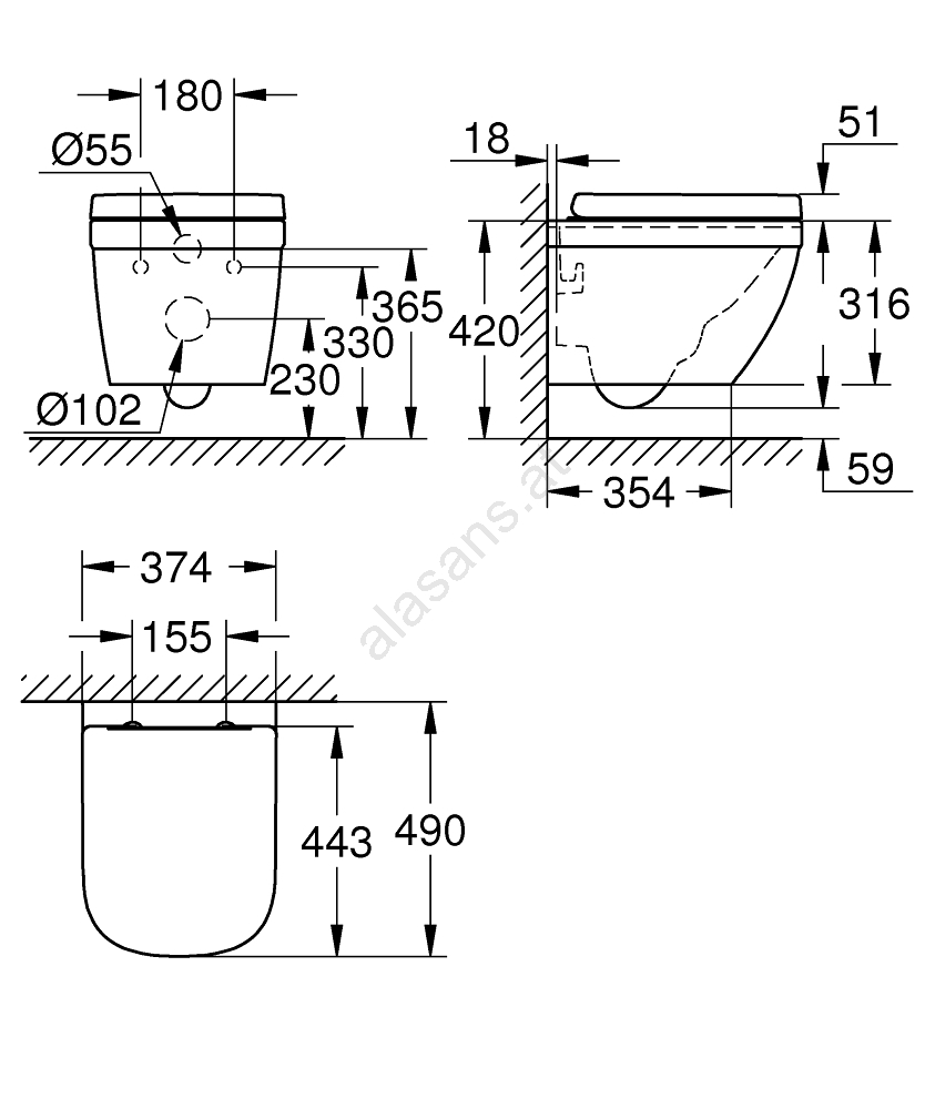 • Sanitärkeramik mit glatter, schmutzabweisender Oberfläche.