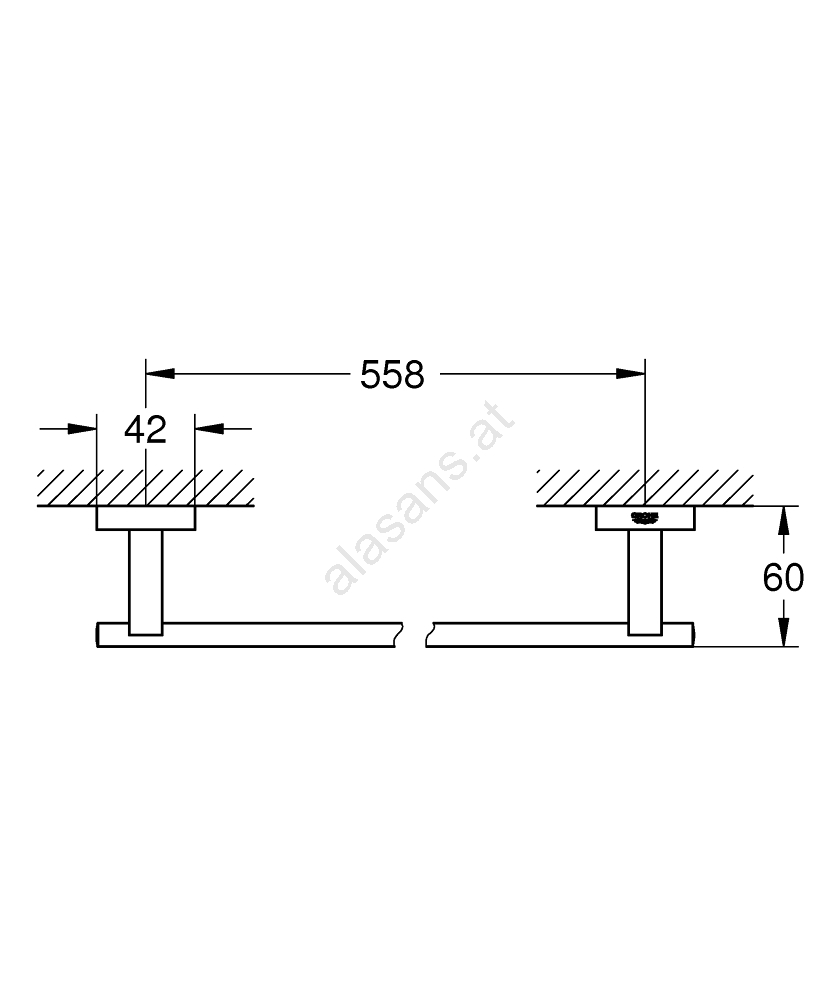 • Gesamtlänge 600 mm, nutzbare Länge 558 mm für bequemes Aufhängen von Handtüchern.