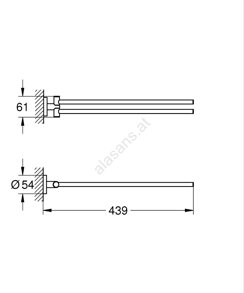 • Gesamtlänge 439 mm bietet ausreichend Platz für Handtücher.