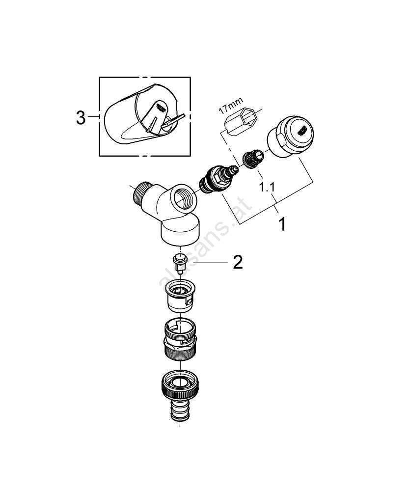 • Schmierkammer, Oberteil 1/2" für einen absperrbaren Schlauchanschluss.
