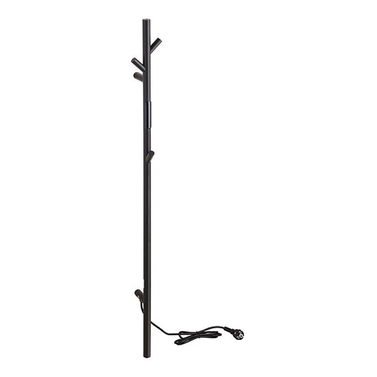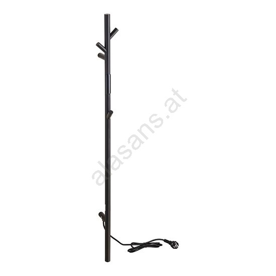• Elektrischer Handtuchwärmer mit eleganter schwarzer Oberfläche.