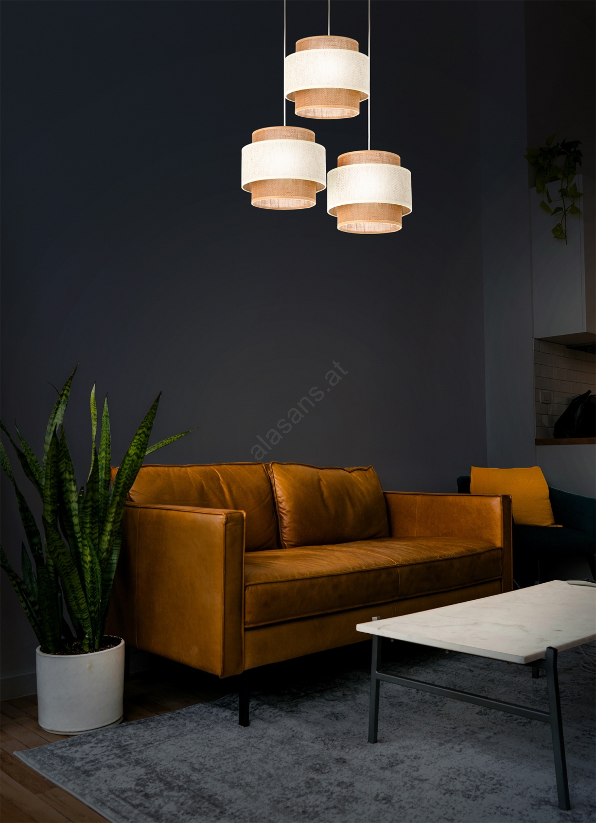 • Pendelleuchte an Kabel BOHO 3xE27/60W/230V weiß/jute