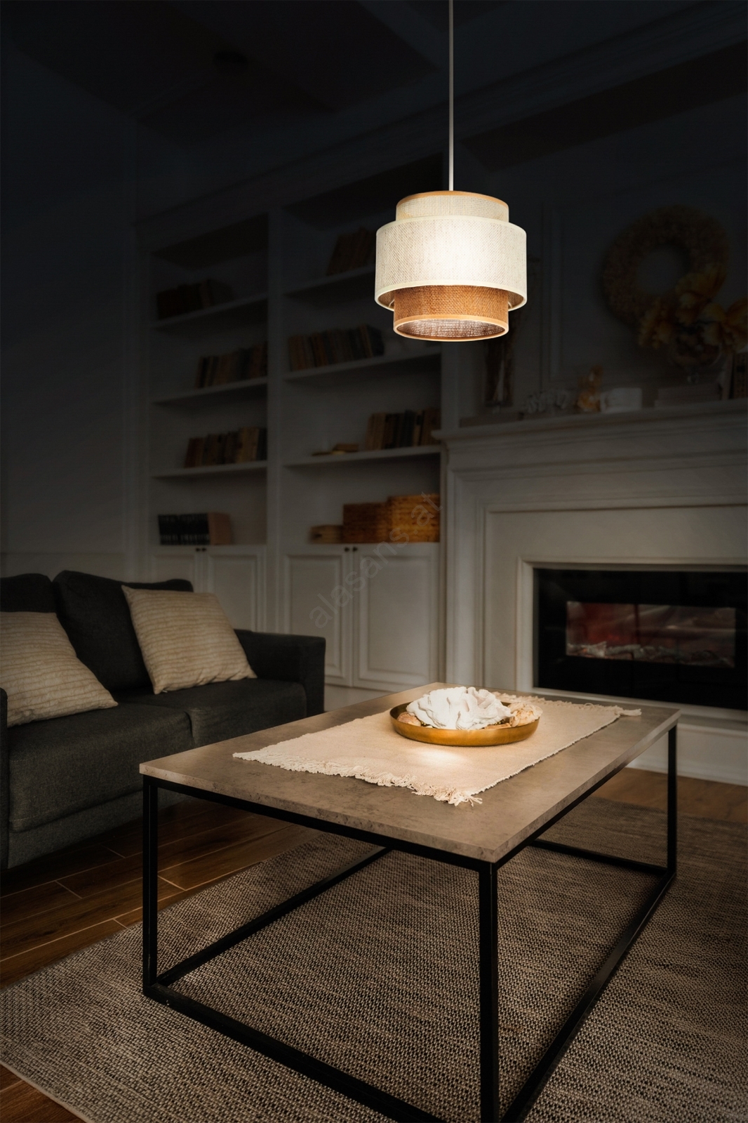 • Pendelleuchte BOHO mit Kabel 1xE27/60W/230V Ø 20 cm Jute/Creme