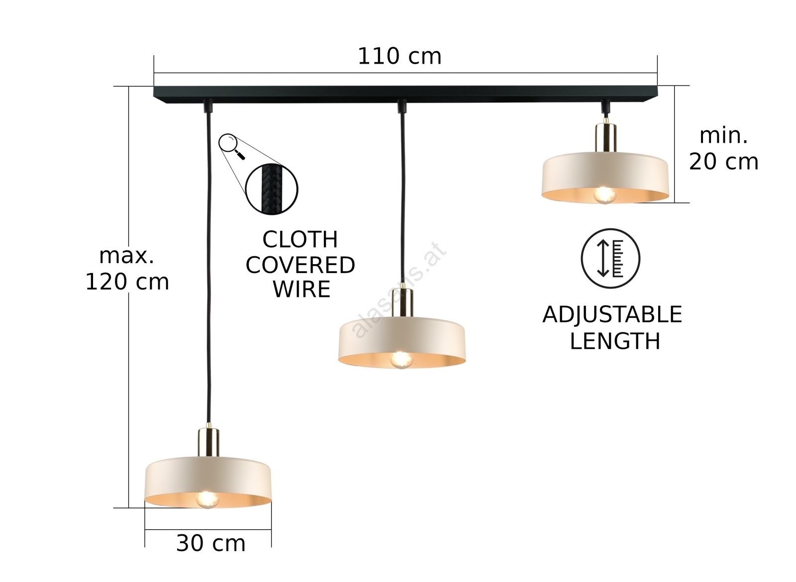 • Hängeleuchte LATTE 3xE27/60W/230V beige/schwarz/gold