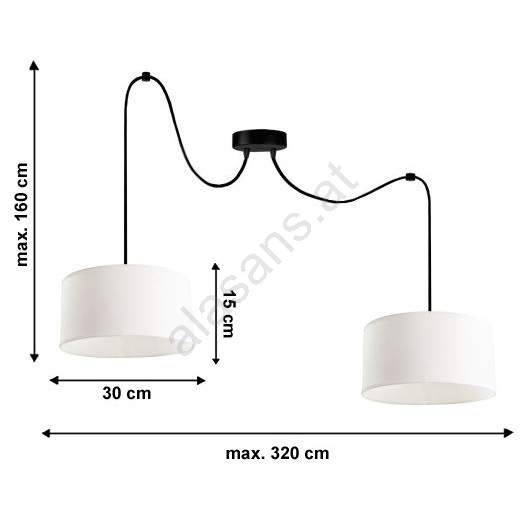 • Die maximale Höhe der Deckenleuchte beträgt 1600 mm.