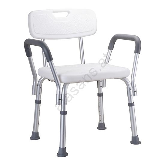 • Duschstuhl mit Rückenlehne und Armlehnen für maximalen Komfort und Sicherheit.