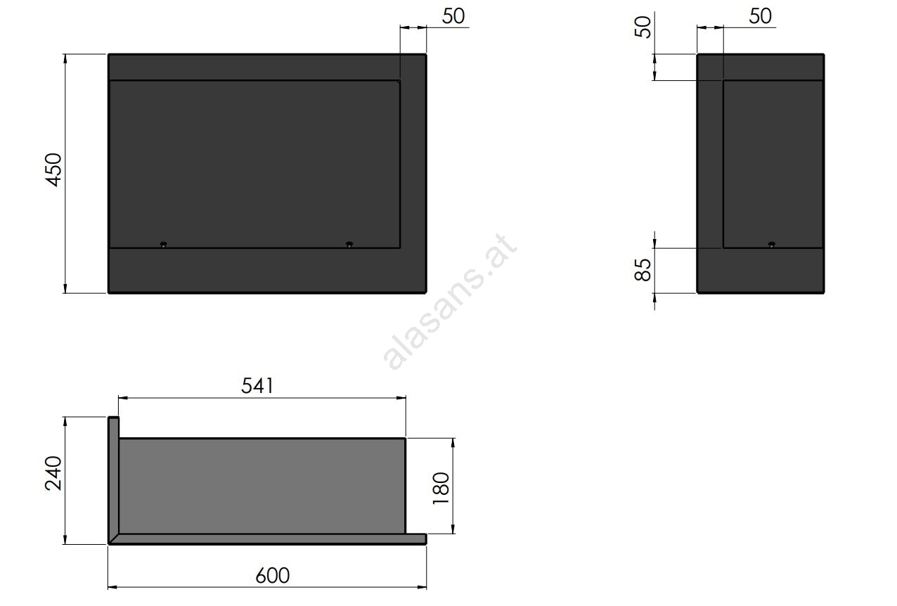 • Abmessungen der Feuerstelle: 45 x 60 x 24 cm.