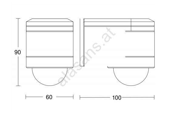 • Bei der Montage an einer Gebäudeecke ist die Überwachung von zwei Wänden des Hauses möglich - ein zweiter Sensor ist nicht erforderlich.