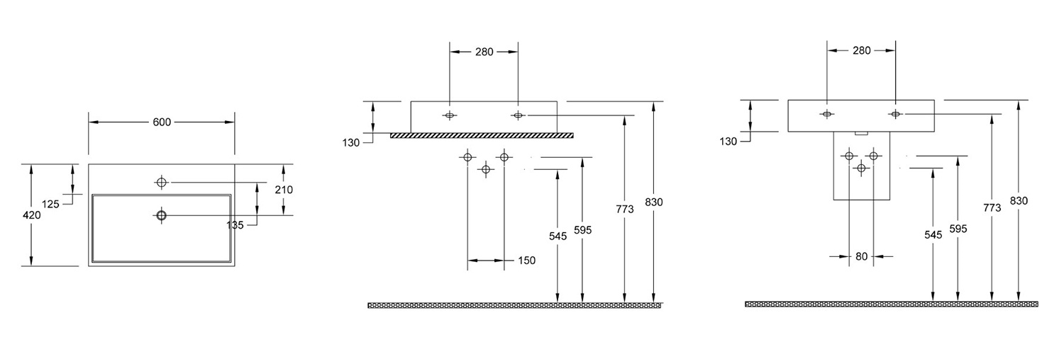 • Das Waschbecken ist ohne glasierte Rückwand.