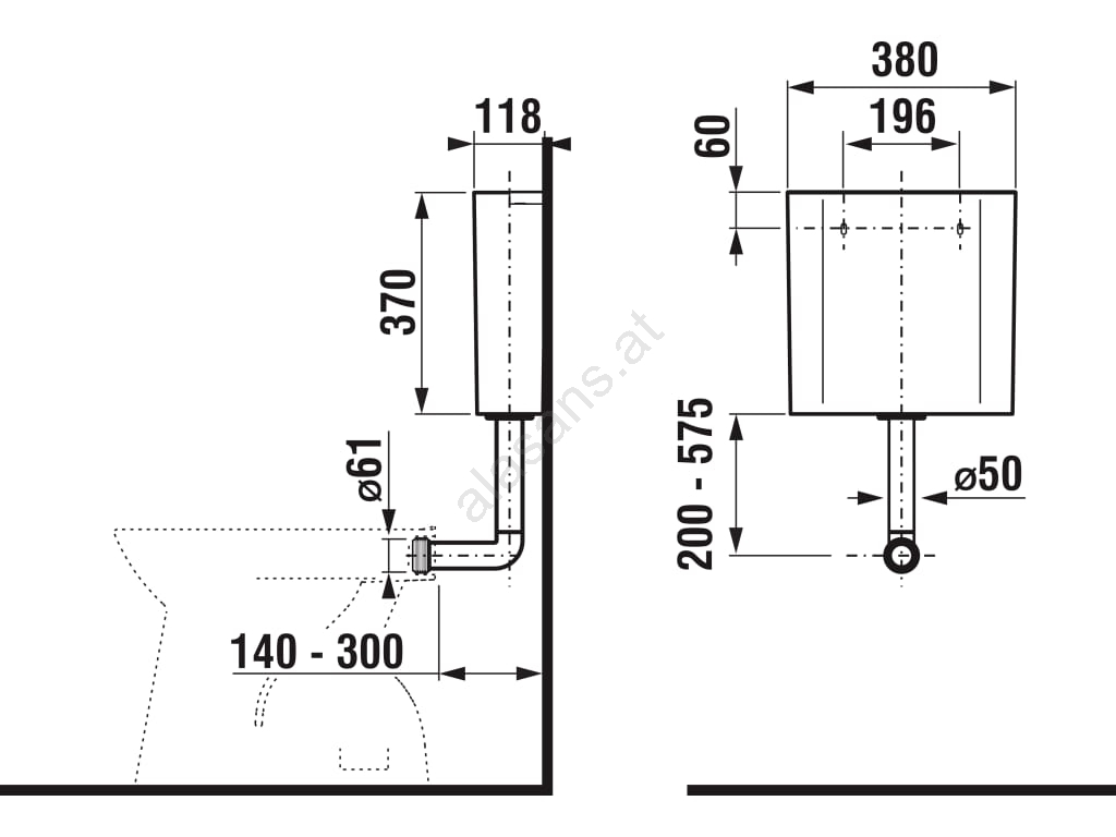 • Durch die Verstellbarkeit (200-575) kann der Spülkasten in unterschiedlichen Höhen montiert werden.